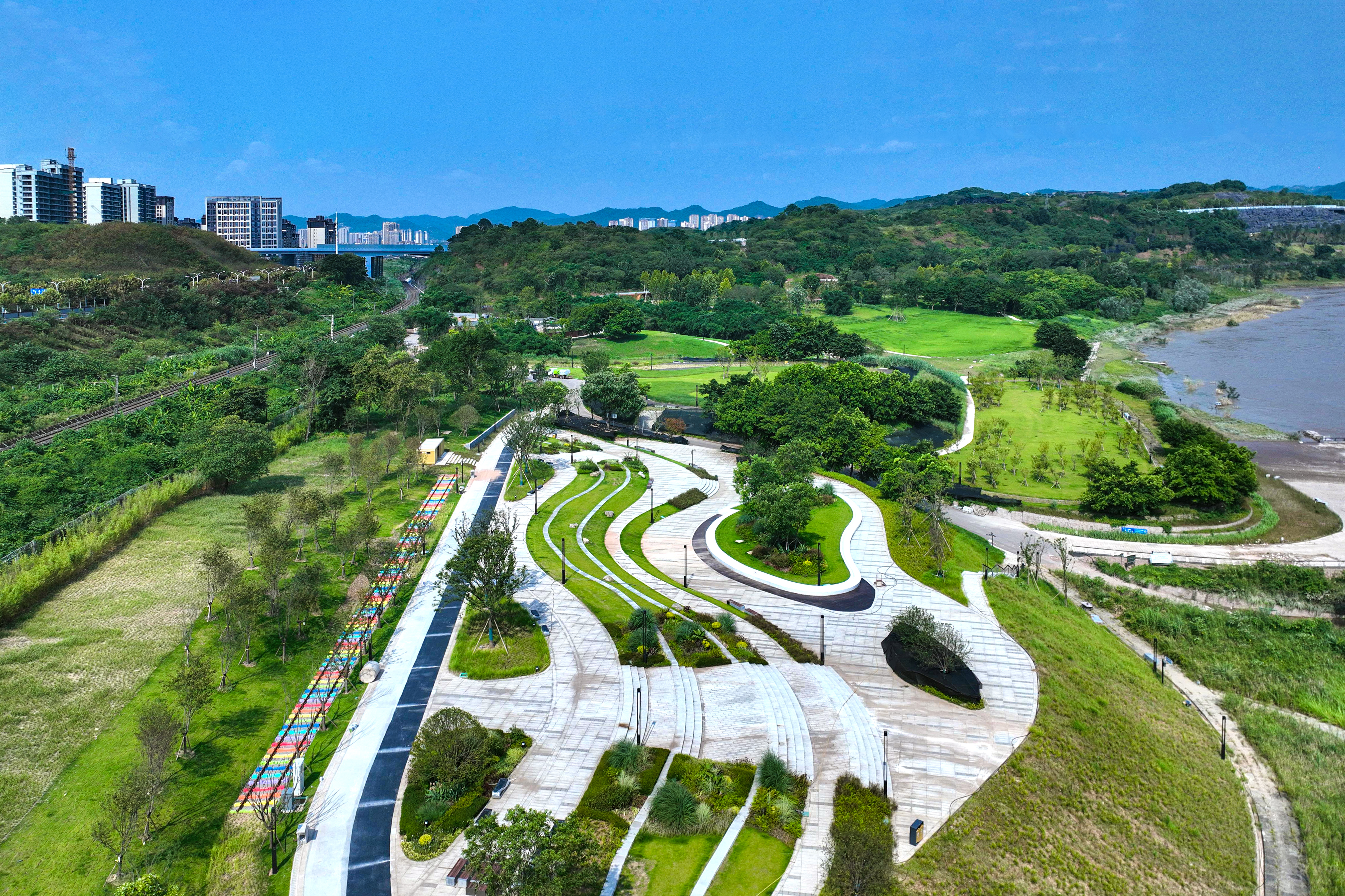 中冶建工承建的重慶“兩江四岸”治理提升長(zhǎng)江北岸線延伸工程釣魚嘴濱江段項(xiàng)目,是重慶市重點(diǎn)工程,也是“兩江四岸”治理提升重點(diǎn)項(xiàng)目,全長(zhǎng)約4.2公里,通過微改造,巧妙利用現(xiàn)有草海、森林、江灘等資源,彰顯原生態(tài)自然景觀,使生態(tài)美景連點(diǎn)成線,讓群眾享受更多開窗見景、推門見綠的城市空間,成為全國(guó)各地增植補(bǔ)綠、打造生態(tài)宜居城市的典范。